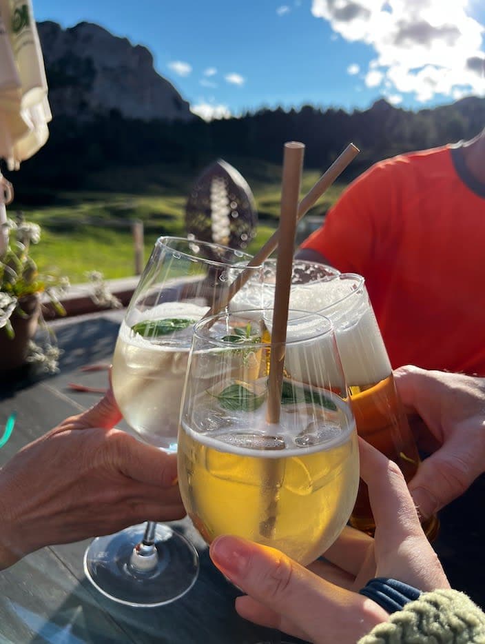 After lunch, the trail gently made its way for the next couple of hours toward Rifugio Fodara Vedla. Surrounded by lavishly green meadows, a tiny chapel and grazing cows with swinging collar bells, this was the most picturesque mountain hut I’d ever seen. And after singing a few lines of The Sound of Music (really, it was that inspiring), we dropped our gear and grabbed an outdoor bench for an apéritif.
