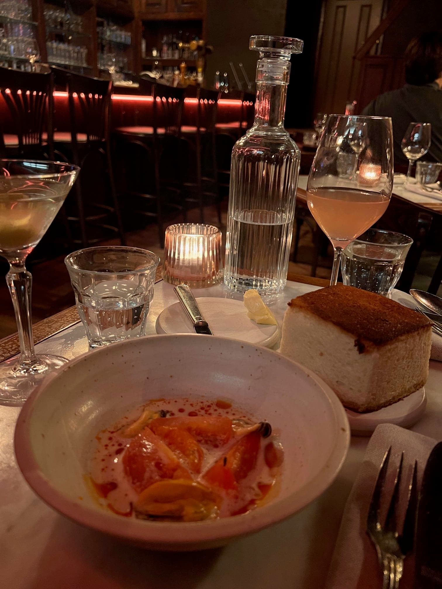 Image 1: Dinner at Bar Gui, Amsterdam; Image 2: Lounge on the boat