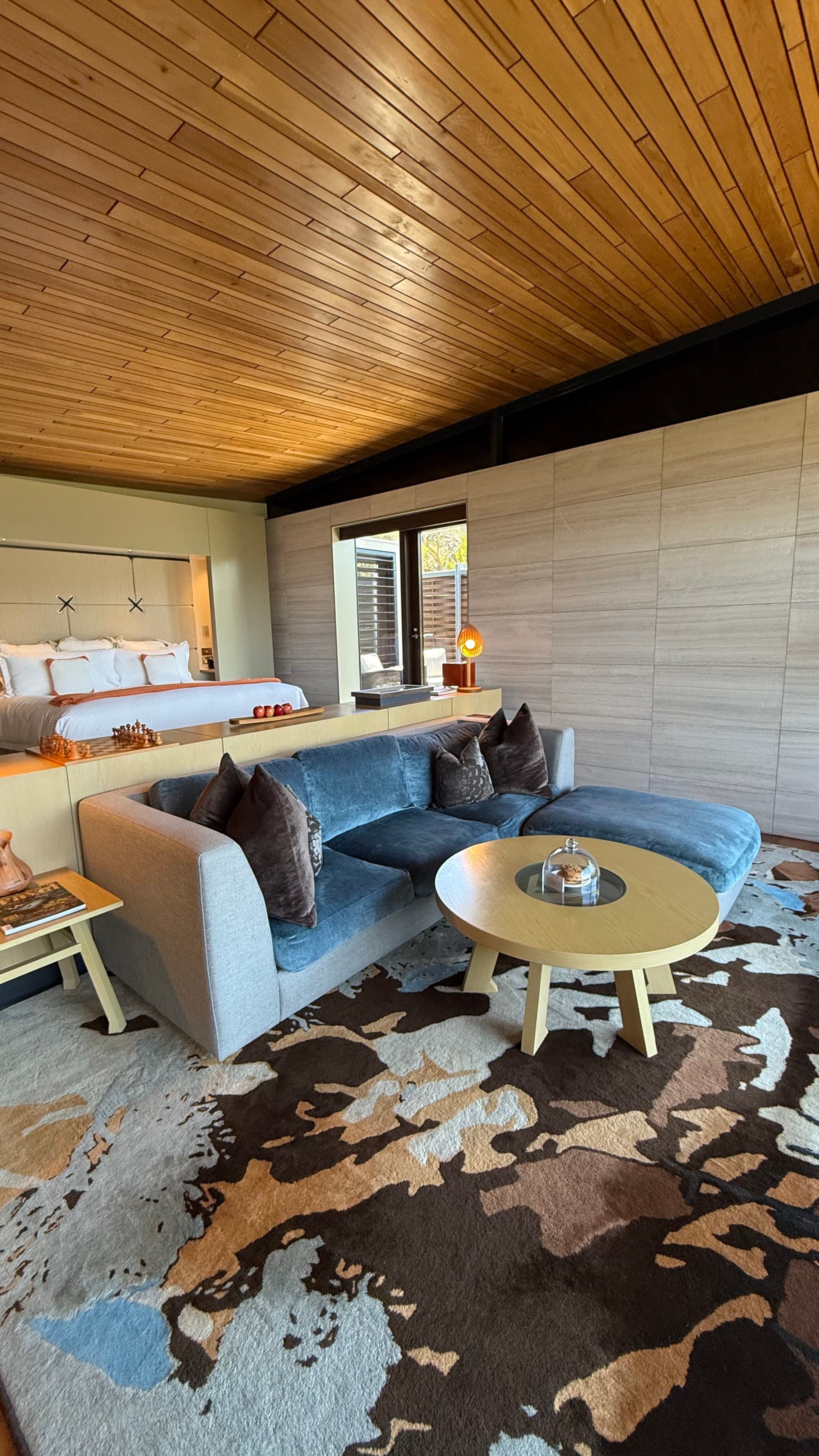 Guests can unwind in one of the 20 expansive suites, where floor-to-ceiling windows capture the stunning views of the bay and mountains. The luxury suites blend modern comfort with natural beauty, offering sweeping views of the bay and mountains. Featuring floor-to-ceiling windows, Tasmanian oak accents and private outdoor areas, these suites create an indulgent retreat. The Private Pavilions elevate the experience further, featuring plunge pools, private courtyards and separate living spaces for those seeking extra privacy and indulgence.