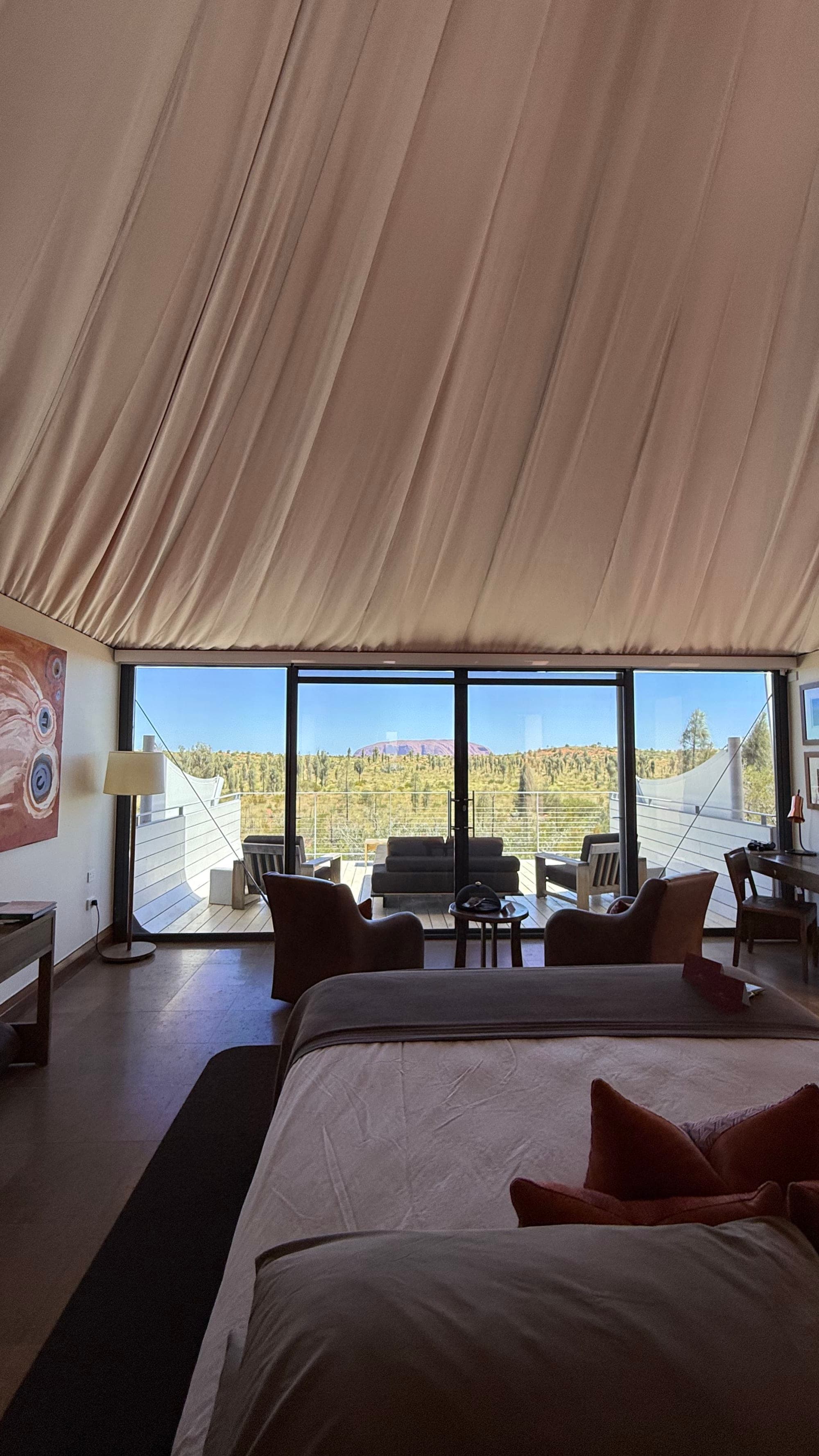 Longitude 131°, one of the Luxury Lodges of Australia, part of the Bailles Lodges collection, is a premier luxury wilderness camp nestled in the heart of Australia’s Red Centre, offering unmatched views of the sacred Uluru and the dramatic Kata Tjuṯa rock formations. With 16 luxurious tents, including the exclusive Dune Pavilion, the property blends contemporary comforts with the raw beauty of the desert. Each tent is designed to provide unobstructed views of Uluru, and guests are immersed in the timeless landscape while enjoying modern amenities like king or twin beds, en-suite bathrooms and private verandas.