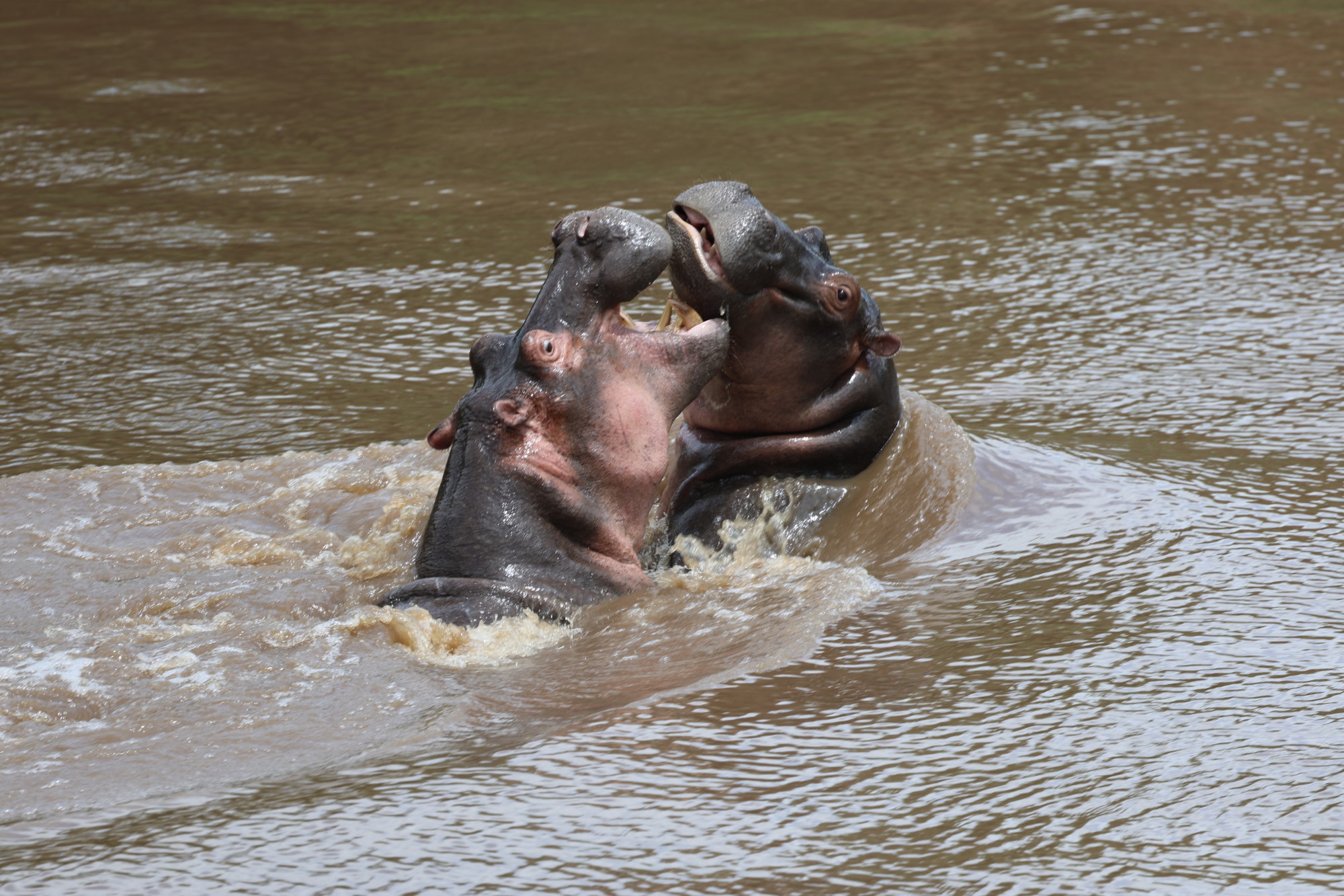 We pulled up to the entrance of the camp where the local Masai Tribe welcomed us with a traditional dance, and the option to join. What a welcome! Upon checking-in, the property manager, Jemma, gave us a tour of the grounds. We were brought a refreshing welcome drink and were shown around the main lodge. The restaurant and full bar are in the main lodge, which offers beautiful views of a river that is home to a local family of hippos.