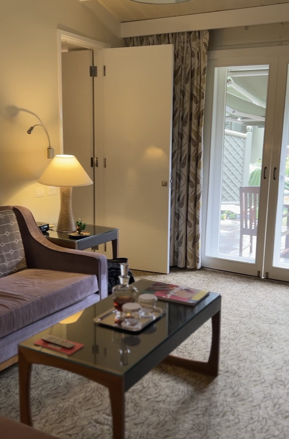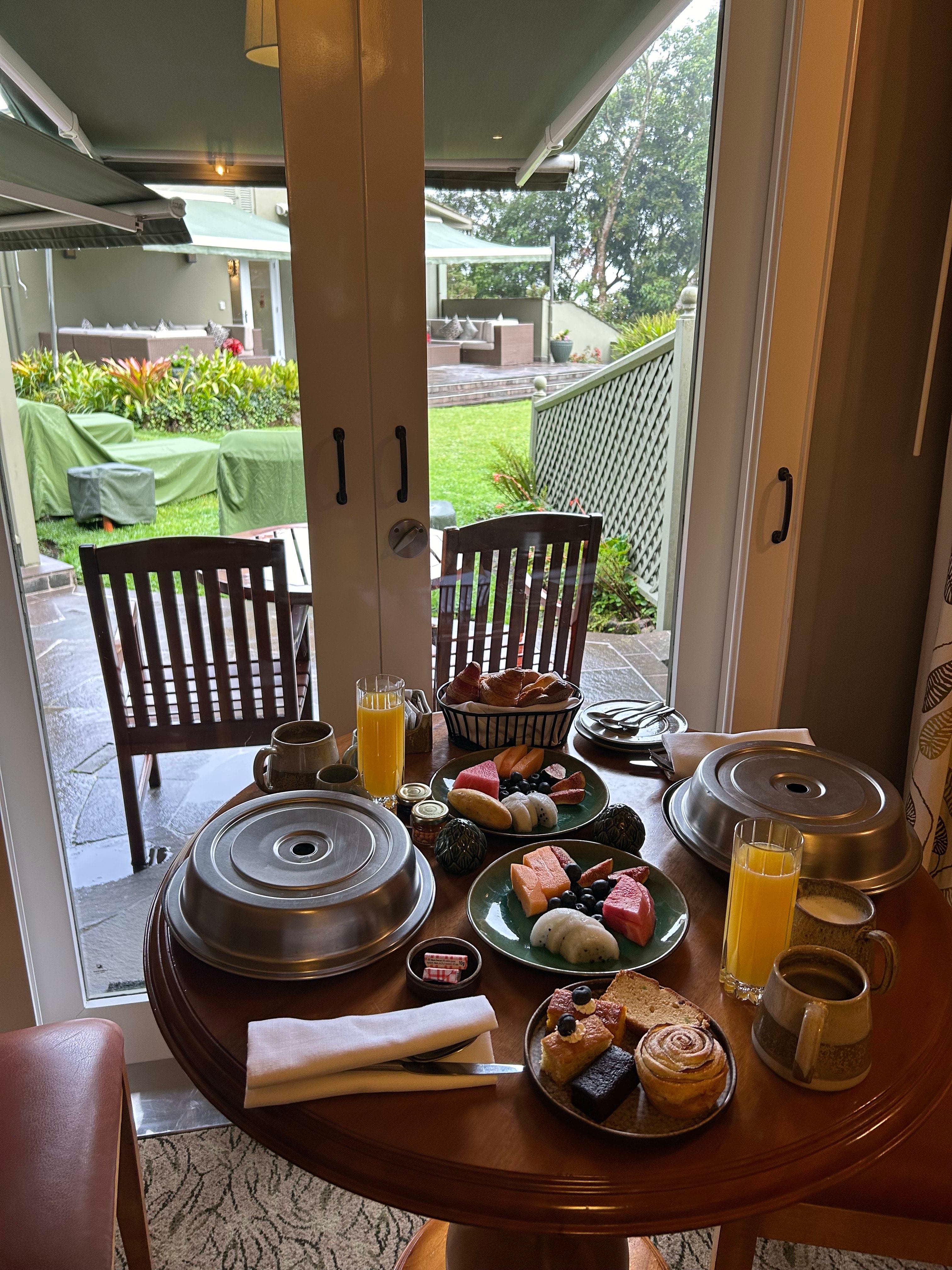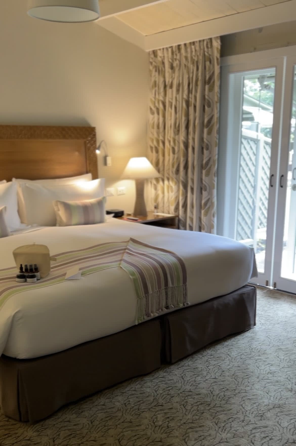 The rooms are thoughtfully appointed with a very comfortable bed, which is so important after a long day of hiking! The amenity kits offer many delightful touches as well, such as a special cream for tired feet, a cacao-coffee body scrub, bath products made of local herbs and warming body oil; you have everything you need to pamper yourself before and after you explore. The room's mini-bar also contains a plethora of snacks and local beverages, along with a Nespresso machine in case you want to kick-start your day with an espresso before heading to breakfast. The hotel generously upgraded me to the one-bedroom suite, which was incredible. Each room's terrace leads out to a lush, verdant common area, with several outdoor sofas set below a waterfall where guests can relax, have a drink or maybe even a cheeky nap after a long day of hiking.