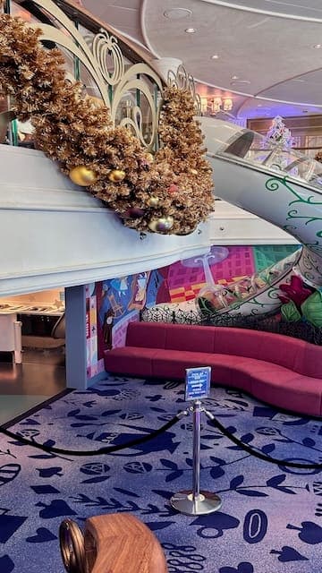 There are endless things to do on the Disney Wish! The Oceaneer Kids Club (ages 3-10) has multiple rooms from the superhero academy to a star wars room to a cozy princess cottage. Kids will be given a magic band and will scan into the club where they will be required to wash their hands. Parents receive a notification on the app when their child requests a pick up. There are also spaces for tweens and teens and a nursery for babies that needs to be booked in advance. The ship has two movie theaters as well as a large, two story theater for Broadway style shows. The shows vary based on the ship, but the Wish features The Little Mermaid and Aladdin. Both shows were incredible and a highlight of the cruise. There are also multiple pools, a large water slide (must be 42’), a gym and a splash pad for children who are not potty trained.