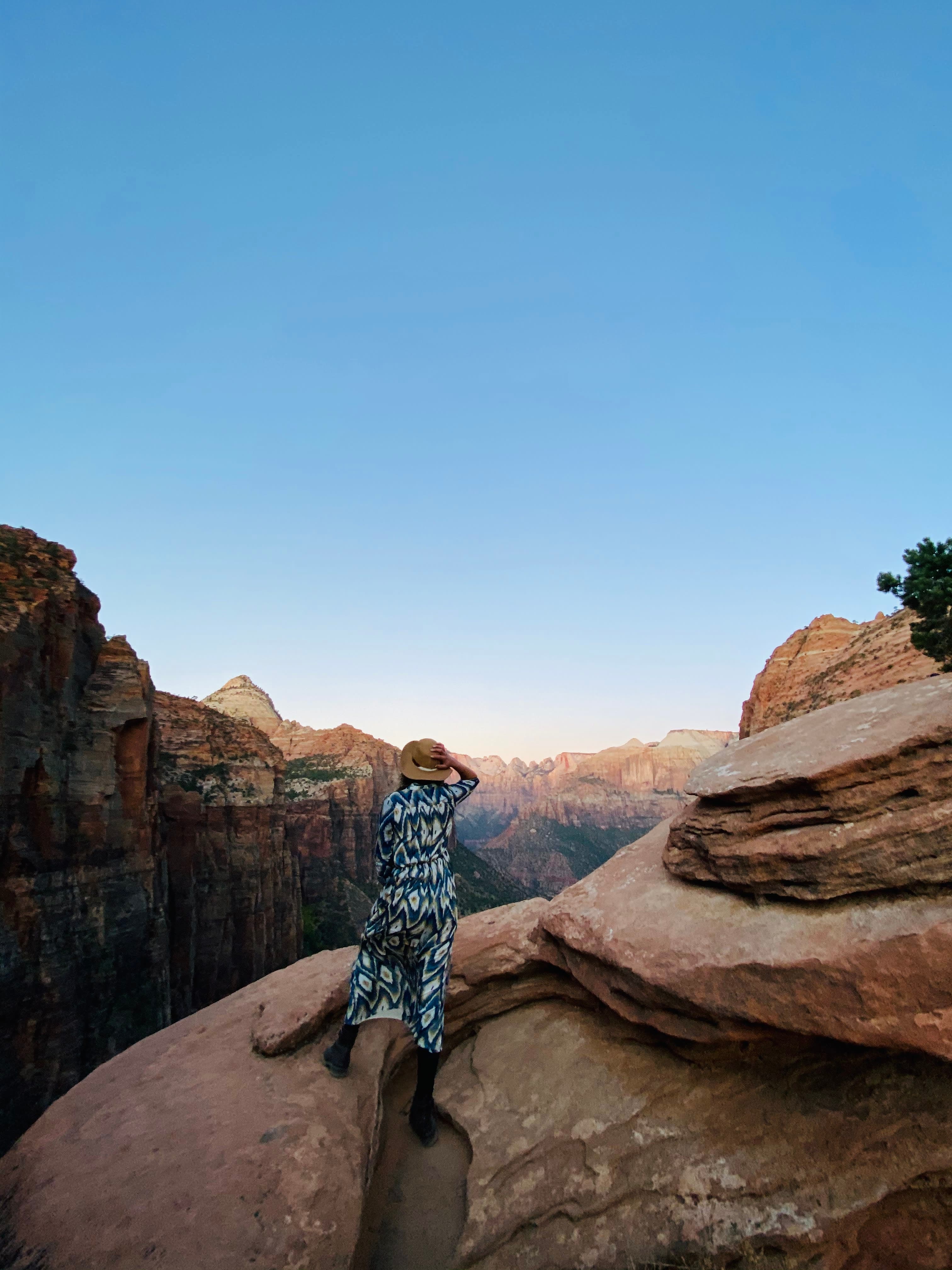 The morning we departed, we woke up extra early to get to the Canyon Overlook trail to see the sunrise over the canyon. Be warned! There are no shuttles to this trail and there is very limited parking, so plan to get there early and bring a headlamp or flashlight if you plan to go up for sunrise. It's not a difficult hike, but you are along the cliff's edge and climbing up steep rocks at points, which can be a bit scary in the dark. Despite the short trek to get there, the views are unbeatable and you quickly understand the namesake "God's Country" as you see the sun rise above the canyon, slowing illuminating the canyon with hues of red, orange and gold.