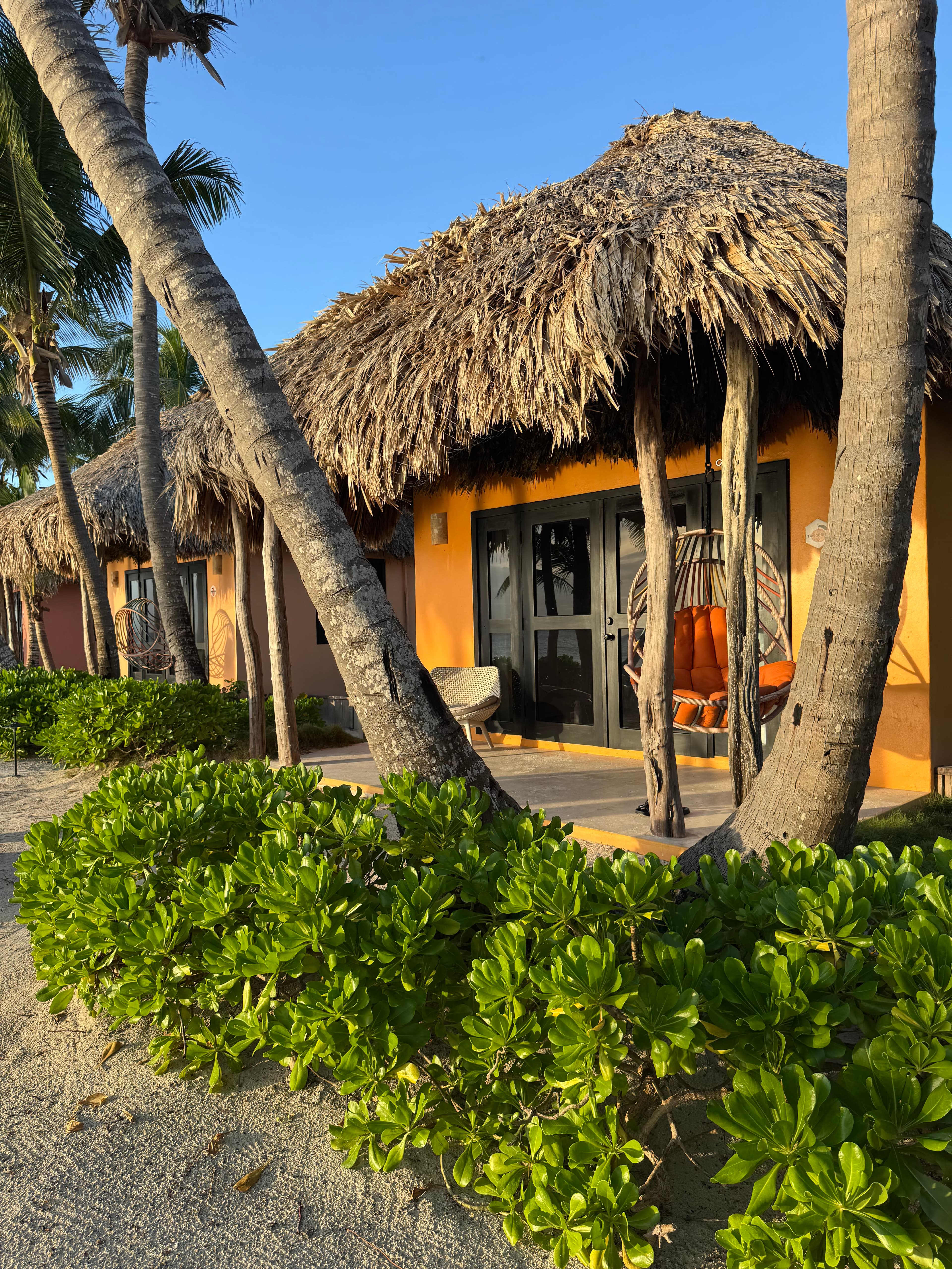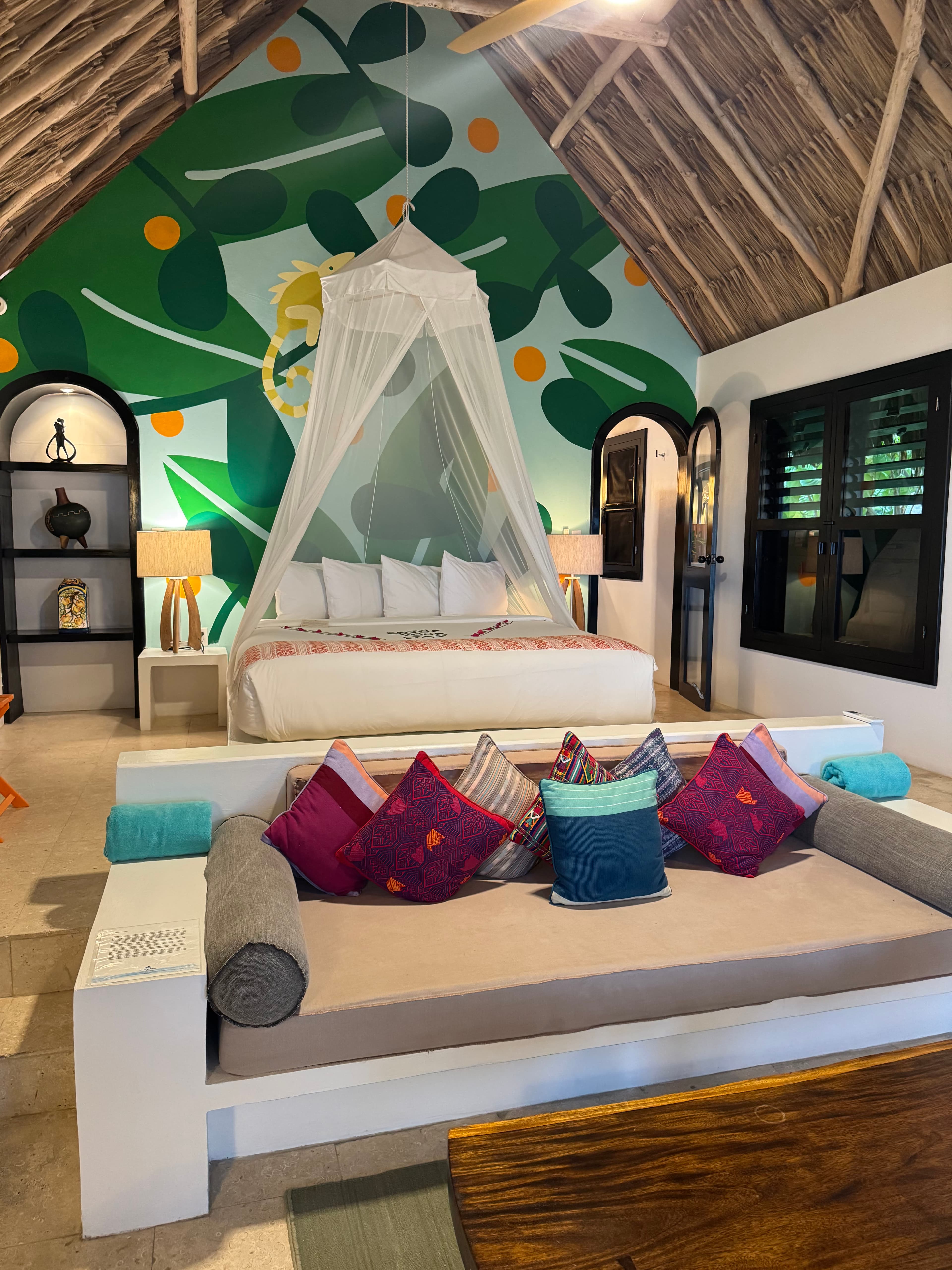 After an effortless arrival, check-in was a breeze, and we were led to our Seafront Casita, a perfect little retreat. The room was beautifully appointed with a cozy sitting area, and a thoughtful welcome message crafted from leaves and flowers on our bed set the tone for our stay. Our porch with a hammock chair and lounge chairs overlooking our own small stretch of beach made for a peaceful escape.