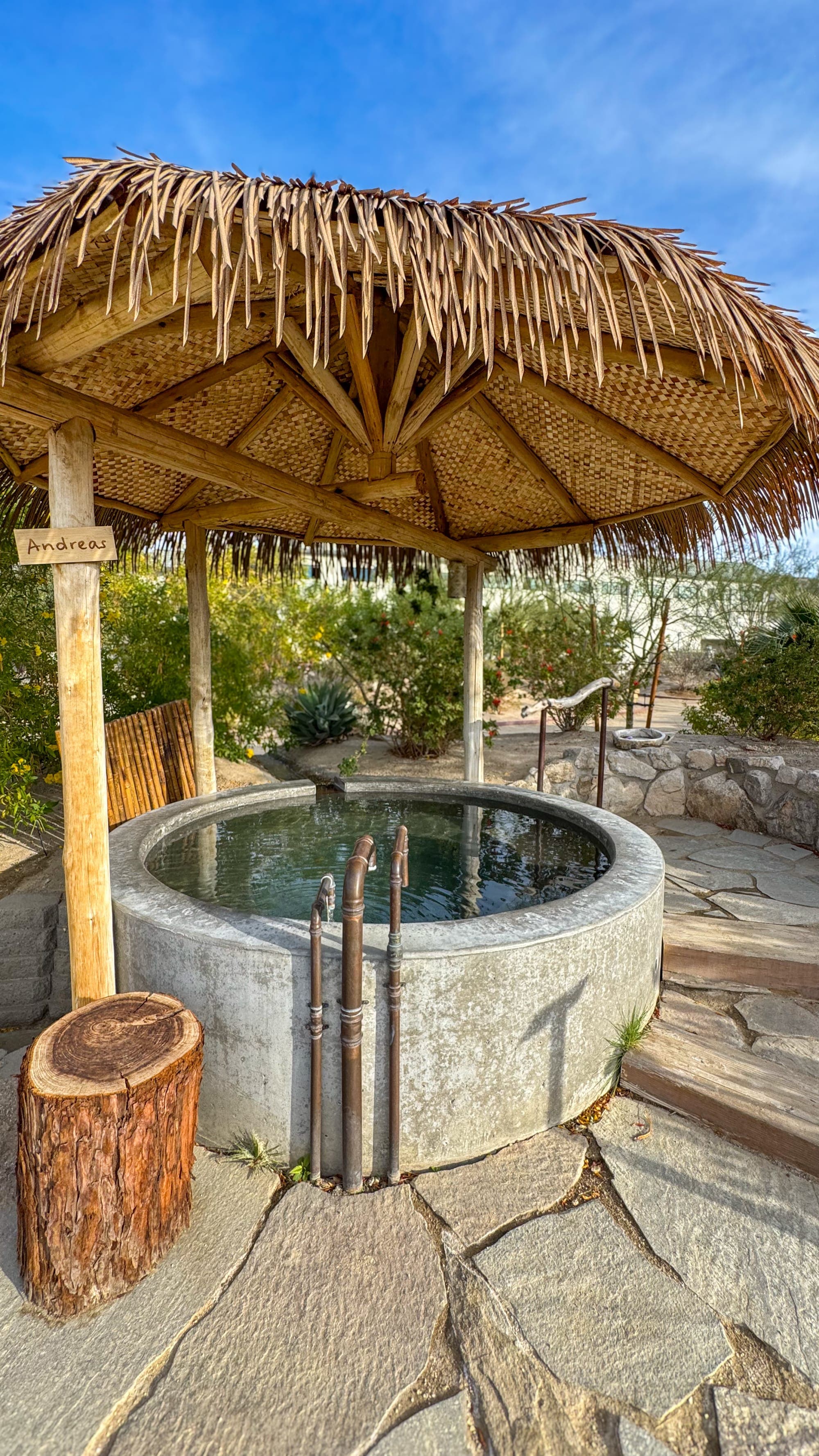 Azure Hot Springs Resort offers an array of exceptional wellness options. Start your morning by soaking in one of the five hot tubs while sipping coffee and taking in the breathtaking views of Mount San Jacinto. Afterward, enjoy a delicious quiche for breakfast at the café. Then embark on a nearby hike or slip into your swimsuit for a relaxing day by the pool under the sun.